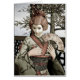 3D digital render of a beautiful vintage geisha wearing traditional clothes sitting in a pavilion, blue sky and cherry blossom background, drawing effect