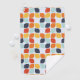 This mid-century modern pattern features orange, teal and teal geometric shapes.
