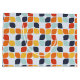 This mid-century modern pattern features orange, teal and teal geometric shapes.