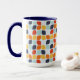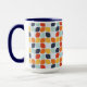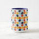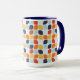 This mid-century modern pattern features orange, teal and teal geometric shapes.