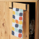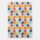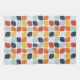 This mid-century modern pattern features orange, teal and teal geometric shapes.
