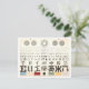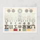 This postcard is a reproduction of a vintage George Mayerle test chart for eye exams. It features seven different alphabets, including a pictorial one for people who couldn't read letters.