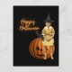 Fun Halloween "altered art" compilation features vintage schoolgirl with added black witch hat and raven sitting on jack o' lantern with neon orange "Happy Halloween" text on black background