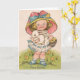 Vintage Girl With Bunny Easter Greeting Card