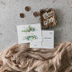 This vintage gold and green eucalyptus thank you postcard is perfect for a simple wedding. The design features hand-painted watercolor green, gold, and blue leaves and flowers neatly arranged into bouquets and geometric elegant frames.