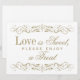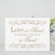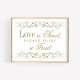 Direct guests to your dessert or favour table with this vintage gold scrollwork "Love Is Sweet, Please Enjoy a Treat" sign. Ornate scroll filigree borders frame the charming text in elegant typography, creating a refined finishing touch for your sweets station. The classic gold on white design coordinates seamlessly with the full scrollwork stationery suite. All text is fully customisable.