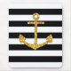 Golden Anchor against a black and white striped background.