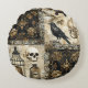 Vintage Goth Skulls and Birdcages Round Cushion