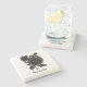 The coasters are gorgeous, a quality feel and heavy weight. They look like a precious archeological find. A rustic stone juxtaposed with a modern floral black and white print. I like the way the print goes slightly imperfect on the cut stone edges giving them a kind-of natural beauty.