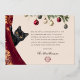 The back of the card features an endearing watercolor illustration of a black cat peeking out from behind a red velvet curtain. Use the provided Victorian style Christmas poem, or replace with your own heartfelt message, followed by an elegant script signature and classy monogram. Matching accessories and alternate versions available within our Crimson Velvet Christmas Party Suite.