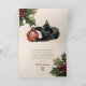 Open the card to find an endearing watercolor illustration of a black cat playing with a festive ornament, accompanied by a Victorian style Christmas poem that you can use as is or replace with your own heartfelt holiday message, followed by your signature in elegant script and heraldic style family monogram. The back features a rich red background with family monogram. Digital download available if you wish to print at home or share to your socials. Matching accessories and alternate versions available in our Crimson Velvet Christmas Party Suite.