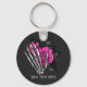 Whimsical vintage gothic keychain featuring hot-pink roses adorning a skeleton hand.