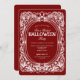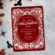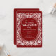 A Halloween Party Invitation with a gothic feel. Features a vintage frame, a script font and a red background which carries onto the back of the card. Customise with your own details to spread the word about your spooky event! Please browse the Halloween Party Invitations Collection for more designs.