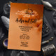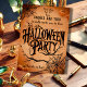 This Halloween party invitation features a vintage-inspired design with an orange and black colour scheme, perfect for the spooky season. The front showcases a bold, gothic "Halloween Party" text surrounded by twisting vines and cobwebs, with pumpkins adding a festive touch. The back of the invitation continues the theme with whimsical pumpkins and elegant script, inviting guests to a night of “hocus pocus and magical mischief.”