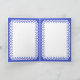 Vintage image of a red rose, a graduation hat and diploma inside a delicate white doily and bright royal blue colour on the background.