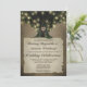 Vintage Grandfather Oak Tree Wedding Invitations - features a grandfather oak tree with lights, a vintage background and old, torn printed parchment paper for the text box.