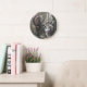 Vintage Grandma Teaching Kitting to Granddaughter Large Clock