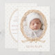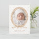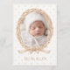 Quaint vintage grapevine wreath done in soft watercolors. Neutral colours and a burlap bow to finish it off. Add baby boy or girl name to personalise. Reverse side has neutral coordinated polkadot pattern with oval shape double frame with all the baby stats. Perfect for a boy or girl birth announcement.