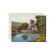 Postcard with a vintage photo lithograph of St. Oswald's Church in Grasmere, in the Lake District of England from 1895 pictures a mediaeval church on the bank of a river with a stone bridge, trees and mountains. Digitally cleaned, enhanced and artistically rendered to resemble pen and ink with watercolors. St. Oswald's Church dates from the 14th century.