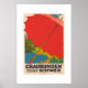 Embrace the charm of Switzerland’s breathtaking landscapes with this vibrant vintage travel poster, promoting Graubünden and the Rhaetian Railways. The bold red umbrella and stylised scenery below invite viewers to explore the stunning Swiss region known for its natural beauty and picturesque villages. This striking Art Deco design adds a touch of retro Swiss elegance to any room and is perfect for lovers of vintage travel posters and European history.