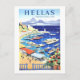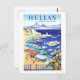 This postcard is a reproduction of a vintage travel poster for Greece/Hellas.