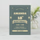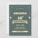 Celebrate this milestone in style with this elegant vintage-inspired 18th birthday invitation featuring a sophisticated deep green background with bold cream typography and geometric accents.