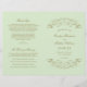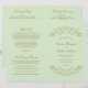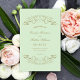 Lush green antique flourishes lend a garden-inspired elegance to this vintage ceremony program. The front cover features ornate scrollwork framing your names and wedding date against a rich green background, with a coordinating vintage backing. Inside pages are fully customisable to include your bridal party, ceremony order, and a heartfelt thank you note. Programs are printed on text-weight paper and arrive flat, requiring a simple centre fold.