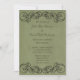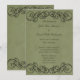Elegant vintage green wedding invitation design featuring decorative scrolls on the top and bottom with a faux textured green background for a classic aged look. Comes in several ready made colour schemes and you may request your own colours by e-mailing me at mshake5918@yahoo.com , no extra charge for colour changes. This design also comes on many other paper products and postage to suit all your wedding set needs.