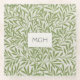 Vintage Green Willow Leaves Monogram Glass Coaster