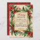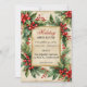 Beautiful vintage Holiday, Christmas, Party invitation. Beautiful Christmas greenery and red berries on vintage background. Edit with your own party details.