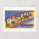 This postcard is a reproduction of a vintage large letter "greetings from" postcard from Racine, Wisconsin.