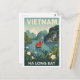 Capture the timeless beauty of Vietnam with this stunning vintage travel poster style postcard. Featuring the iconic karst pillars and emerald waters of Ha Long Bay, the design includes traditional sailing junks with vibrant red sails surrounded by lush foliage and delicate white flowers. Perfect for sending greetings from Vietnam, decorating a travel-themed space, or collecting retro-inspired art. A wonderful piece for lovers of Southeast Asia, retro aesthetics, and scenic landscapes.