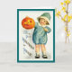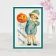 The sweet young child in this vintage Halloween postcard image brings to your little goblin a jack-o-lantern and non-scary wishes for a happy Halloween. The inside text can be removed and personalised with your own text by using Zazzle's 'customise it' feature.