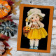Vintage Halloween Girl With Pumpkin Flat Card.