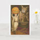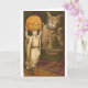 Vintage / Retro Halloween card. Jack-o-Lantern headed man and Owl! Halloween Greetings!