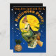 This Halloween invitation design is derived from vintage and antique Halloween cards featuring a witch, jack o' lantern, owl, black cat, bats stars, and a full moon. All text can be personalised and the background colours can be customised in this template.