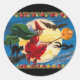 Vintage Halloween Spirit Witch features a classic halloween witch flying across the moon on halloween night with her black cat and owl friends.