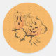 Hand drawn Vintage Halloween Sticker featuring cute pumpkins and leaves on orange dotty background.