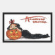 Cute, vintage picture of a pretty witch dressed in black, resting on a smiling pumpkin, with "Hallowe'en Greetings" is featured on this large sticker. A great way to send that special Halloween card of package to family and friends, or use for scrapbooking or decorating too!