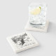 The coasters are gorgeous, a quality feel and heavy weight. They look like a precious archeological find. A rustic stone juxtaposed with a modern floral black and white print. I like the way the print goes slightly imperfect on the cut stone edges giving them a kind-of natural beauty.