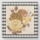 Pretty vintage yellow rose botanicals on distressed cream background with black and white Harlequin diamond pattern border adds a lovely garden element to any home decor