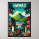 • Immerse yourself in the beauty of Hawaii with this vintage-inspired travel poster that celebrates the island's tropical allure. The design features a smoking volcano, lush palm trees, vibrant hibiscus flowers, and a classic surfboard, all set against a stunning blue sky. Bring the essence of a Hawaiian escape into your space with this charming and nostalgic design.