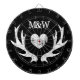 Vintage heart deer antlers custom wedding party Dart Board. Rustic dartboard for newly weds couple. Add your own name initials of bride and groom. Romantic personalised design with custom background colour. Fun for home and country chic garden party games etc. outdoor entertainment for guests, friends, family, kids etc. Hunting theme design. Trendy decorations and decor ideas. Also great for engagement, anniversary, bridal shower etc.