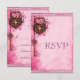 Vintage Heart Lock & Key Pink Wedding RSVP Card