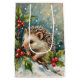 Vintage Hedgehog Among Holly Christmas Medium Gift Bag