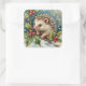 Vintage Hedgehog Among Holly Christmas Square Sticker