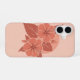 Retro illustration of two stylised hibiscus flowers with large leaves and a decorative circle.