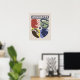 Show your house pride in bold, vintage-inspired style with this striking Hogwarts™ crest design. Featuring graphic silhouettes representing the four iconic houses — Gryffindor™, Slytherin™, Hufflepuff™, and Ravenclaw™ — this artwork blends classic symbolism with a modern, retro aesthetic. Each house emblem is set within a clean, color-blocked shield, creating a balanced and eye-catching composition beneath the bold Hogwarts™ header. Perfect for apparel, stationery, home décor, and more, this design is ideal for witches and wizards of every house. Whether you’re brave, ambitious, loyal, or wise, this Hogwarts™ crest celebrates the unity and legacy of all four houses in one powerful design.