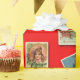 Vintage holiday cards, Christmas cards and postcards scattered on a joyous red background. Makes a unique gift wrap for your very special holiday or Christmas presents. From Scarebaby Design.