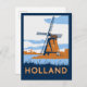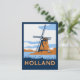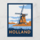 This design features a posterised illustration of the Dutch landscape including two windmills.